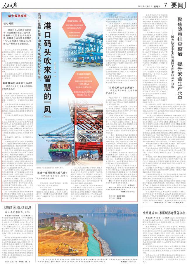 人民日报关注山东半岛南北两港:码头吹来智慧的“风” 作者:admin 发表于:1年前 (2025-01-04) 阅读:1 评论:0 低空经济 我国已建和在建自动化码头规模均位居世界第一 港口码头吹来智慧的“风” 港口码头,水陆联结的纽带、物流交通的枢纽。近年来,随着新一代信息技术快速发展,我国港口码头吹来智慧的“风”,正加速迈向自动化、智能化,不断焕发出全新风采。... Tags: 科技新技术 港口 集装箱堆场 吞吐量 集装箱