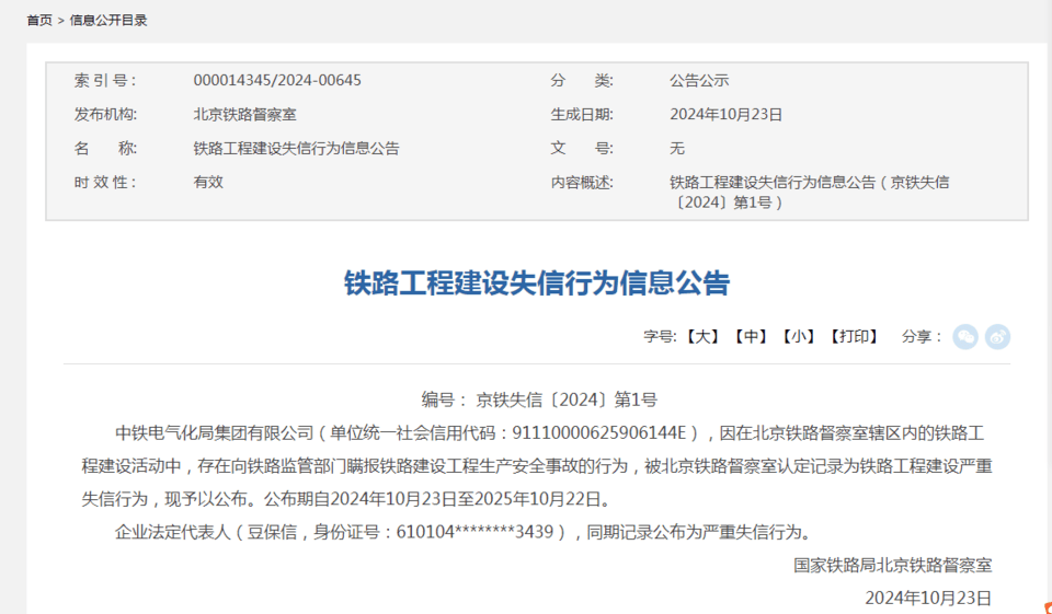 严重失信!中铁电气化局集团公司瞒报铁路建设工程生产安全事故 作者:admin 发表于:1年前 (2024-10-31) 阅读:1 评论:0 科技 近日,国家铁路局政府信息公开铁路工程建设失信行为信息公告,中铁电气化局集团有限公司因在北京铁路督察室辖区内的铁路工程建设活动中,存在向铁路监管部门瞒报铁路建设工程生产安全事故的行为,被北京铁路督察室认定记录为铁路工程建设严重失信行为,公司法... Tags: 江淮汽车 安全生产事故 民生 时政