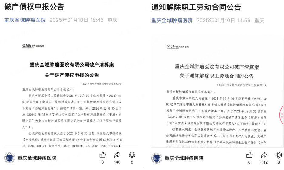 转自:医学界 头顶诸多“光环”,立志建成三甲医院,却走向破产清算。 撰文 | 黄思宇 责编丨汪 航 投资30亿元建设的重庆全域肿瘤医院,开诊仅2年半就宣布破产清算。 1月10日,该院发布的破产债权申报公告显示,当地法院已于去年12月19日裁...