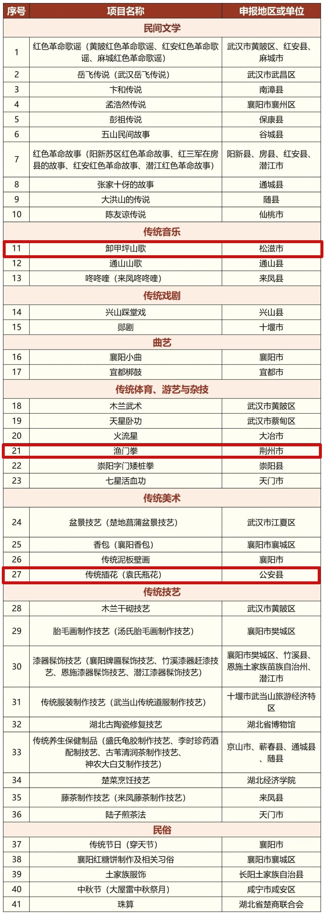 沙市早堂面、小胡鸭、松滋鸡....入选非遗! 作者:admin 发表于:1年前 (2025-01-05) 阅读:0 评论:0 旅游 ¥ sc荆州、张 近日,湖北省人民政府发布《关于公布第七批省级非物质文化遗产代表性项目名录的通知》。此次公布第七批省级非物质文化遗产代表性项目名录(共计53项)和省级非物质文化遗产代表性项目名录扩展项目名录(共计109项)。 荆州市12个... Tags: 高铁 松滋 文化