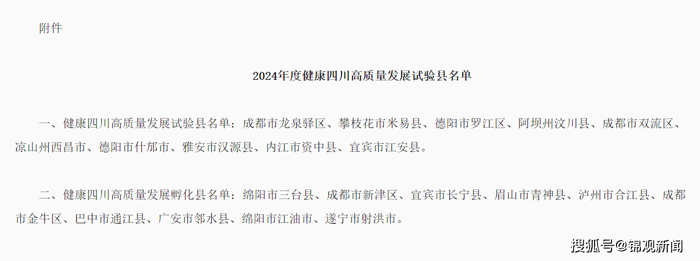 成都4区入选健康四川高质量发展试验县