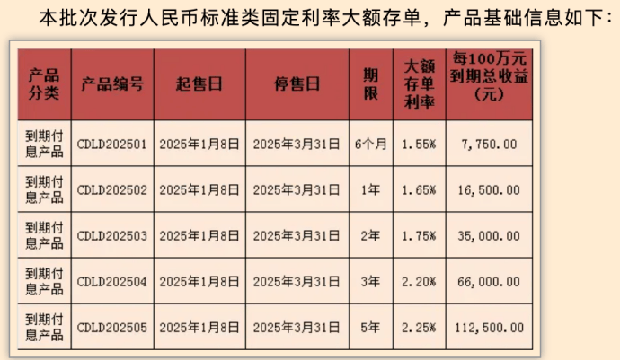 利率最高达2.6%!多家农商行发行2025年首批大额存单 作者:admin 发表于:1年前 (2025-01-07) 阅读:0 评论:0 旅游 1月6日消息,2025年以来,多家银行发行首批大额存单产品。其中,娄底农商行、苍梧农商行等多家农村商业银行公告称,将在未来一段时间内限额发售个人大额存单。 娄底农商行公告显示,其将于2025年1月8日至2025年3月31日发售2025年第一... Tags: 江淮汽车 大额存单利率 利率 存单