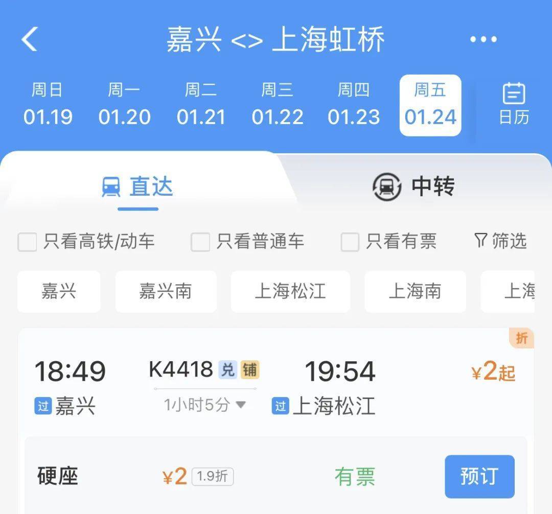 浙江到上海只要2块钱?春运出现“地板价”火车票!还有人买到1.9折车票 作者:admin 发表于:1年前 (2025-01-11) 阅读:0 评论:0 城市 给你5块,你能干什么? 话不多说 有人选择直接来上海了! 嘉兴到上海——2元 杭州到上海——4.5元 这价格也太香了吧! ... Tags: 科技新技术 火车票 民生 铁路
